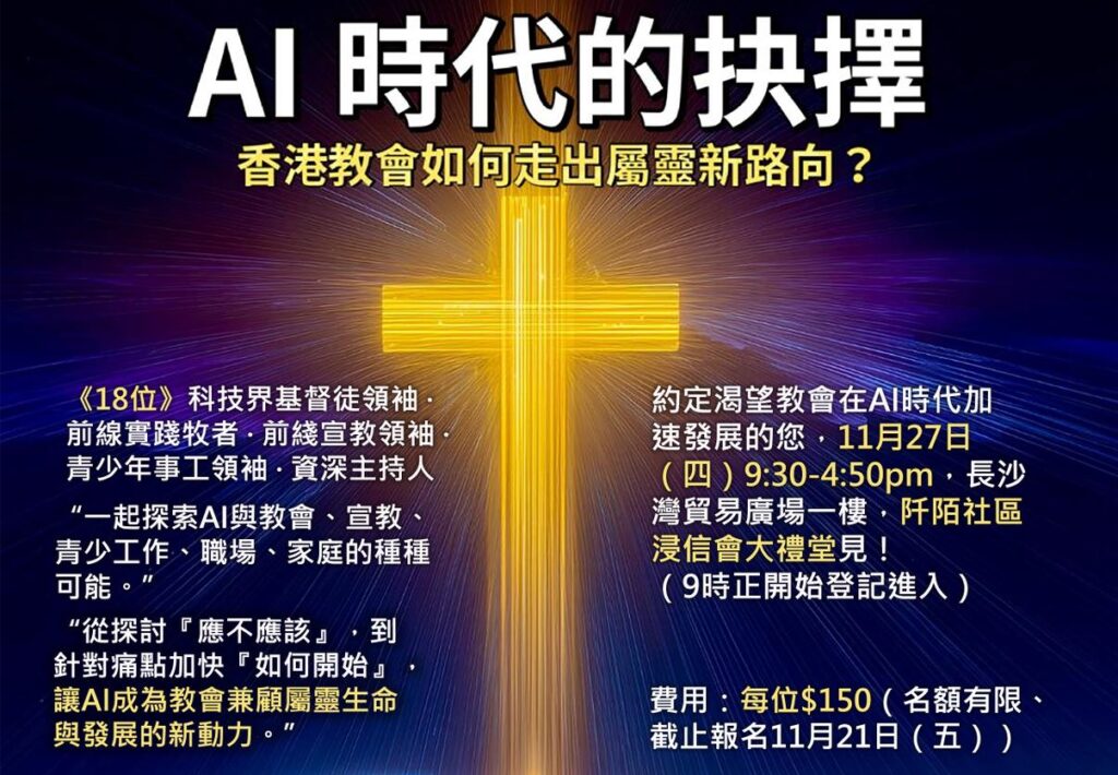 11月27日(四)—「AI時代的抉擇:香港教會如何走出屬靈新路向?」硏討會